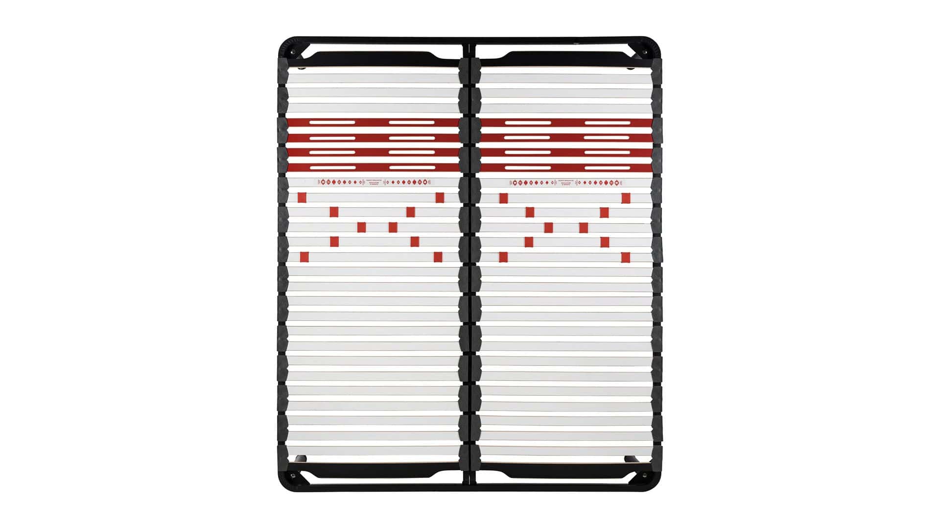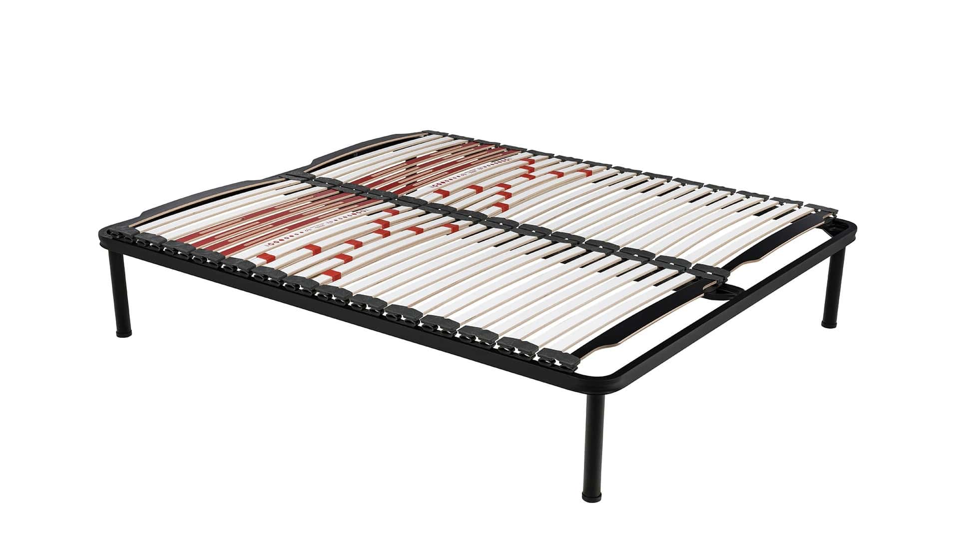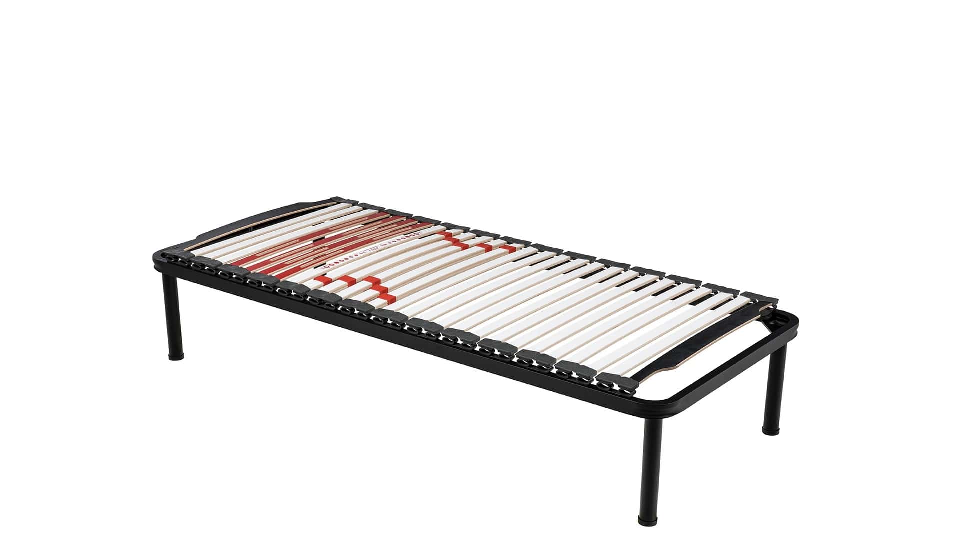 Le doghe asolate in zona spalle garantiscono la massima traspirabilità in una delle zone più critiche durante il riposo. I portadoghe in SEBS® rendono uniforme il piano di riposo.