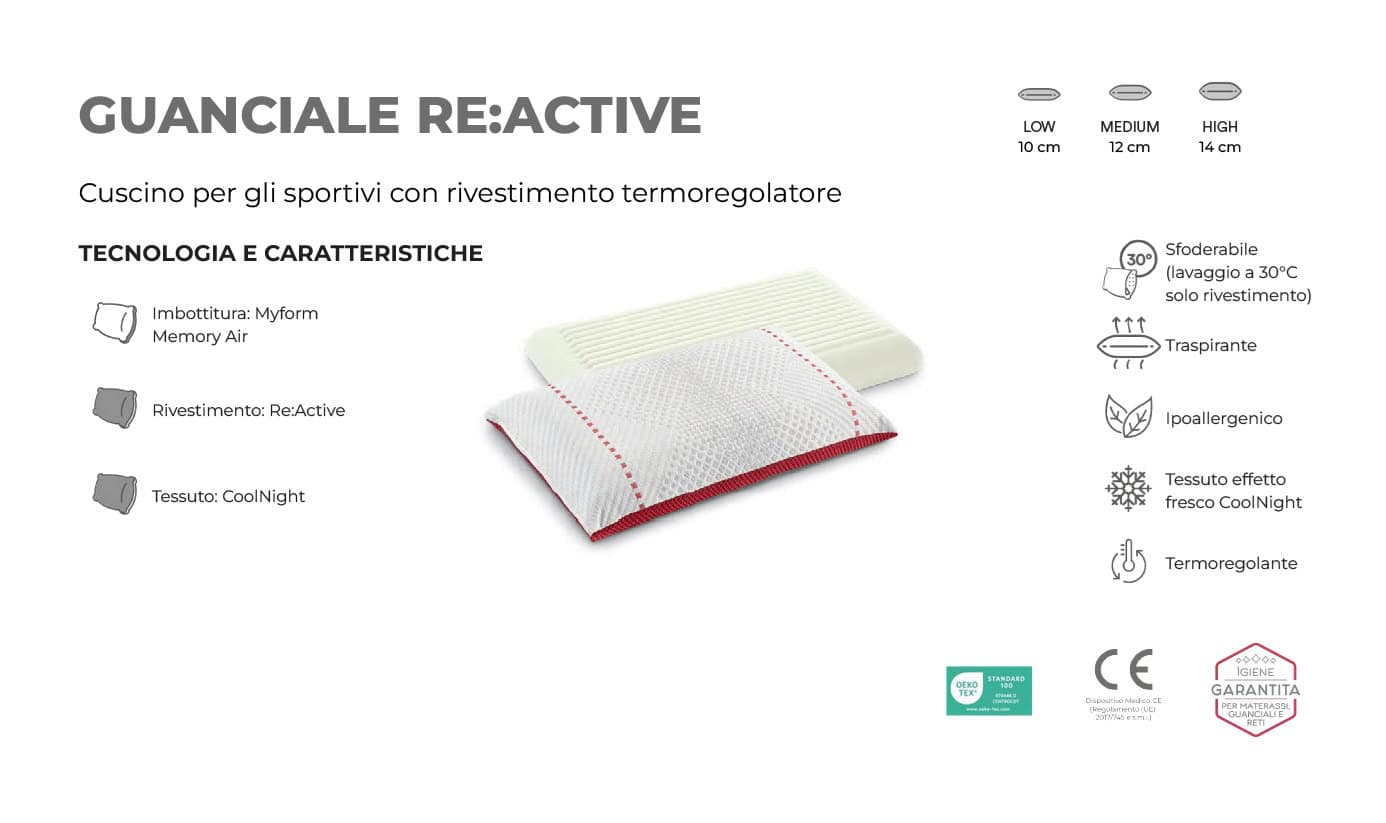 ReActive di Dorelan è un cuscino per gli sportivi con rivestimento termoregolatore.