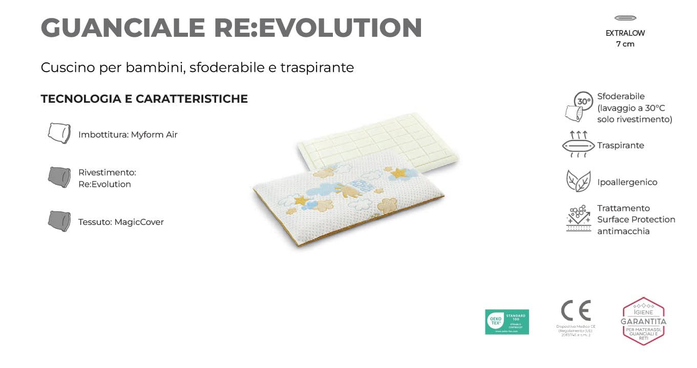 ReEvolution Dorelan è un cuscino per bambini, sfoderabile e traspiranta.