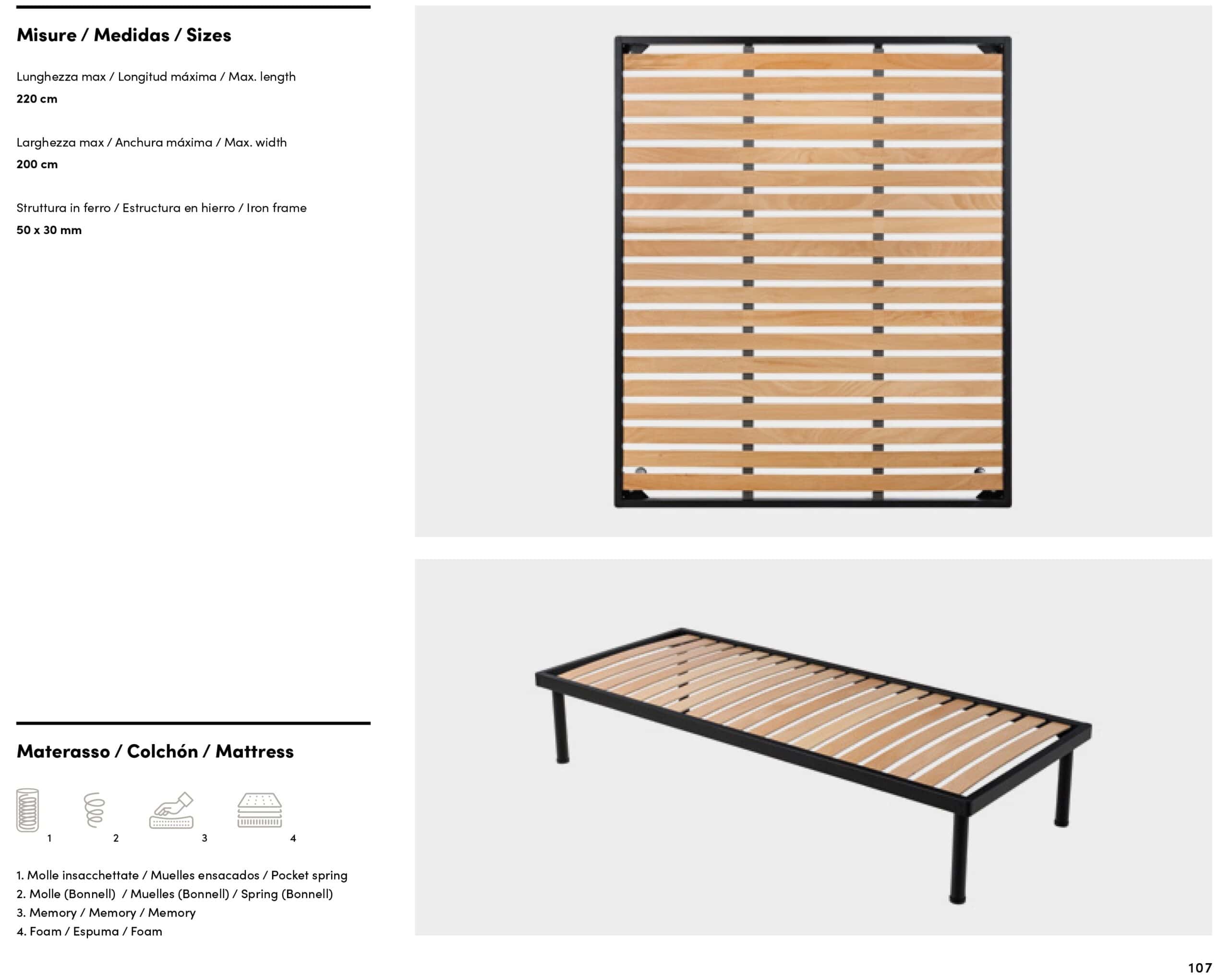Concepita con 19 doghe da 68 mm per permettere un piano di appoggio maggiore e uniforme su tutto il perimetro della rete.