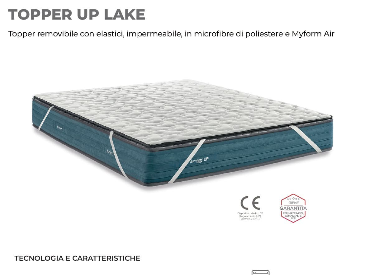 Up Lake di Dorelan è un topper removibile con elastici, impermeabile, in microfibre di poliestere e Myform Air.